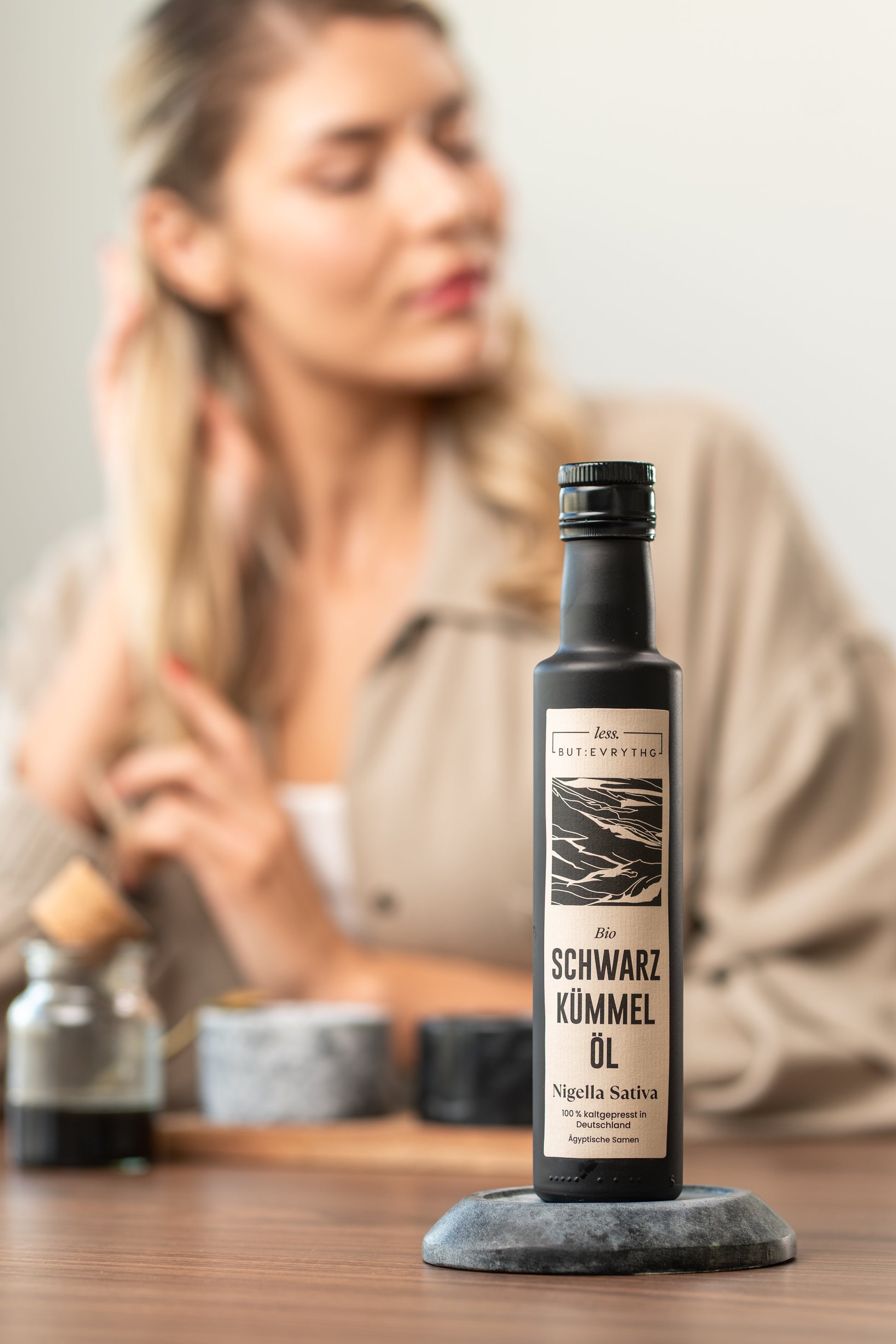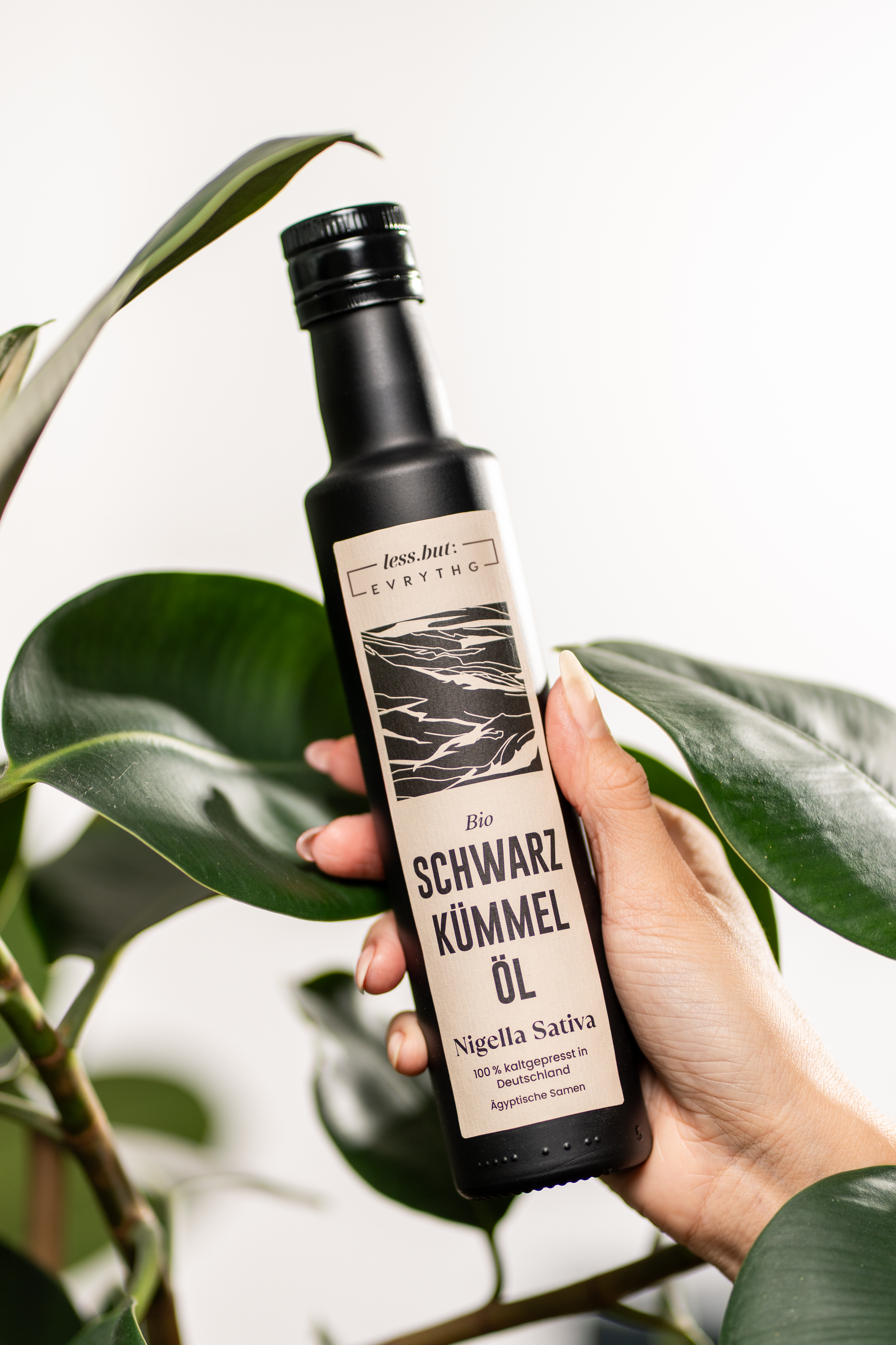 • 100 % Bio-Schwarzkümmelöl (Nigella sativa)